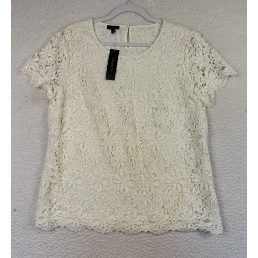 Talbots Shirt Womens 14 Ivory Floral Lace Short Sleeve Scalloped Hem Condition: Brand New with Tags... Show more