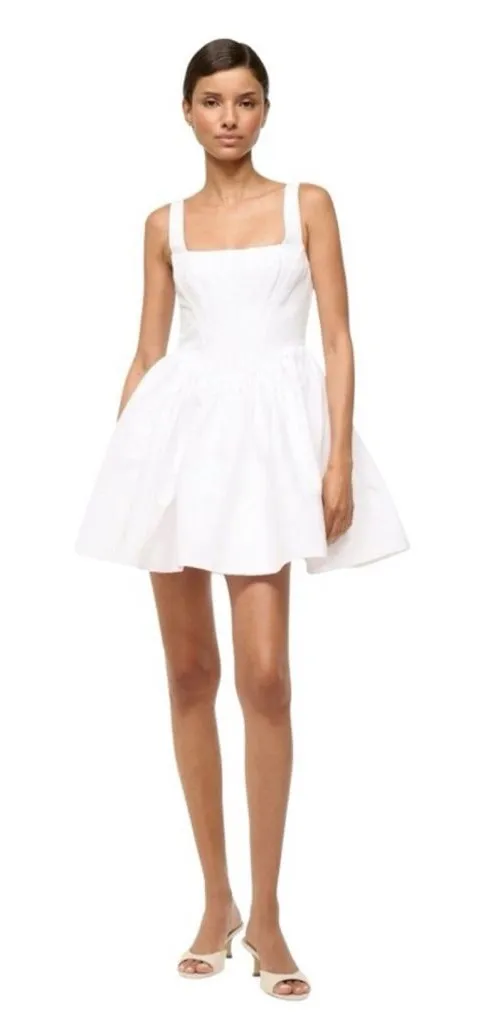New without tags. Talulah Madi Nelson Sloane Corset Dress Landscape in White. Size Small. 100% Cotton. A sleeveless babydoll mini dress in timeless color. This style features a feminine skirt with corset bodice. Boned bodice Gathered waist Square neckline Hook-and-eye and hidden zip at back On-seam side pockets Neutral , bride , bachelorette , bridal shower , engagement photos , honeymoon , wedding reception , rehearsal dinner , graduation , party , white party , spring , summer , coquette girl , ballet , balletcore , cocktail A3