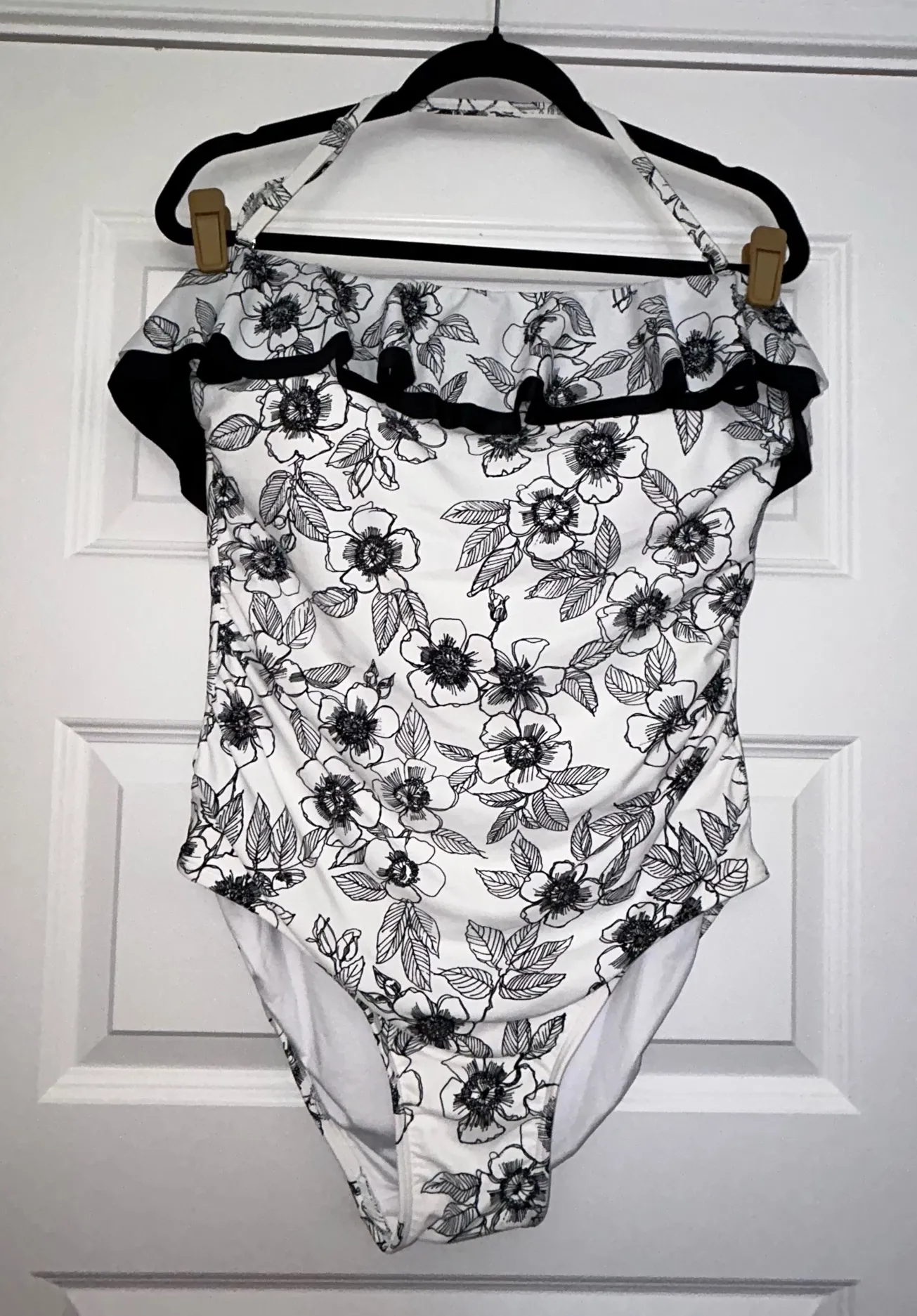 New, Tommy Hilfiger Belair Halter Ruffle Floral Print One-Piece Swimsuit Size 16 Color Black, White... Show more