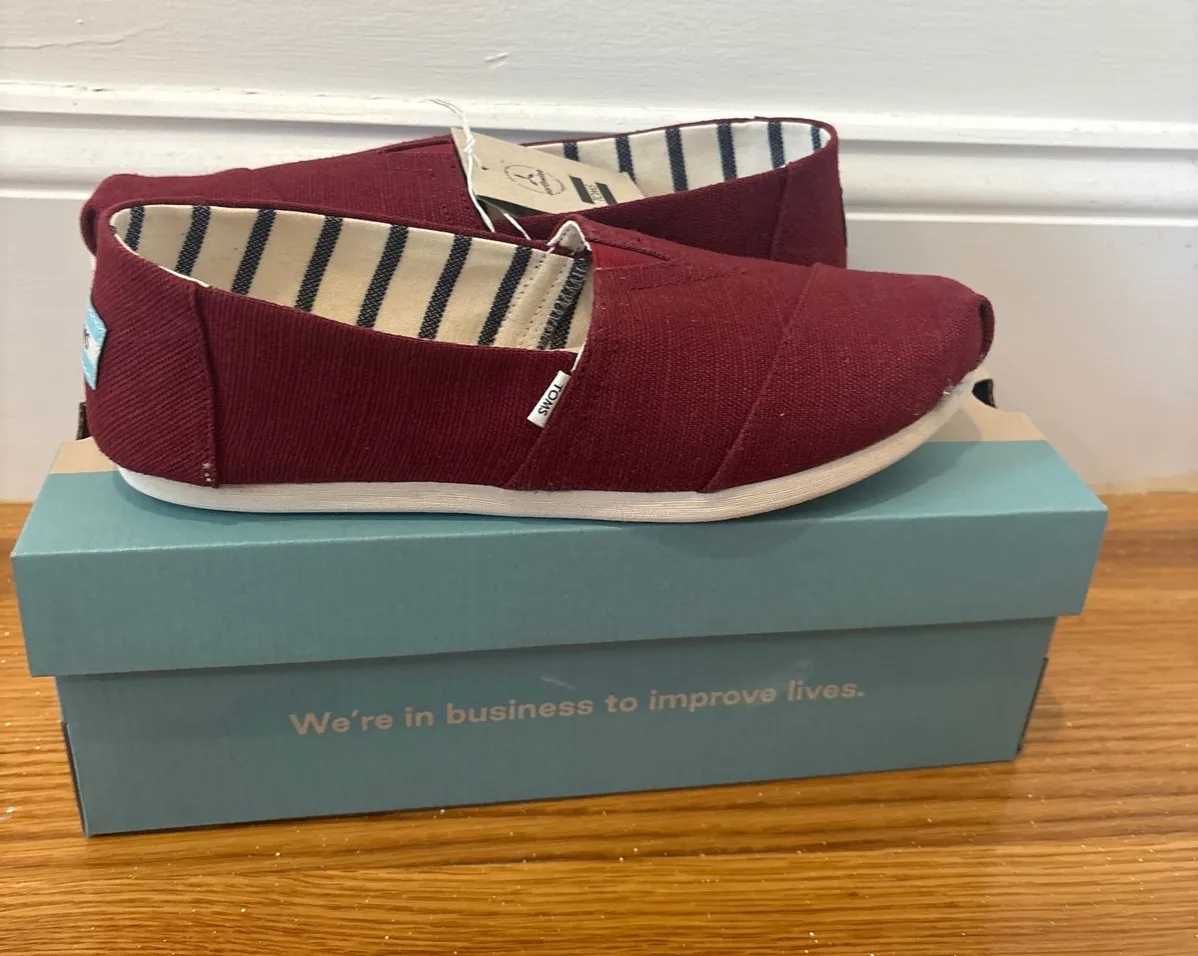 Burgundy Alpargata Heritage Canvas slip on shoes. These classic TOMS shoes feature a comfortable, ca... Show more