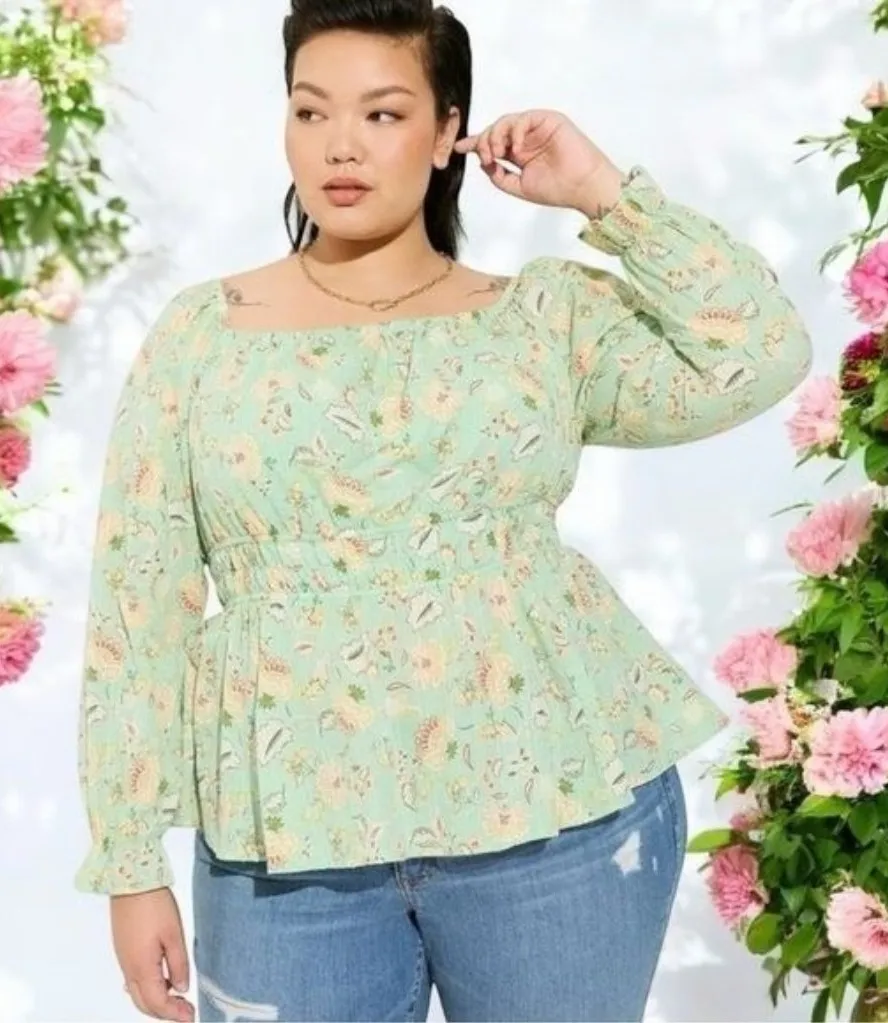 NEW Torrid Cotton Dot Blouson Sleeve Smocked Top Milk Maid Cottagecore Dainty 2X Green Size undefined - $38 New With Tags - From Casey