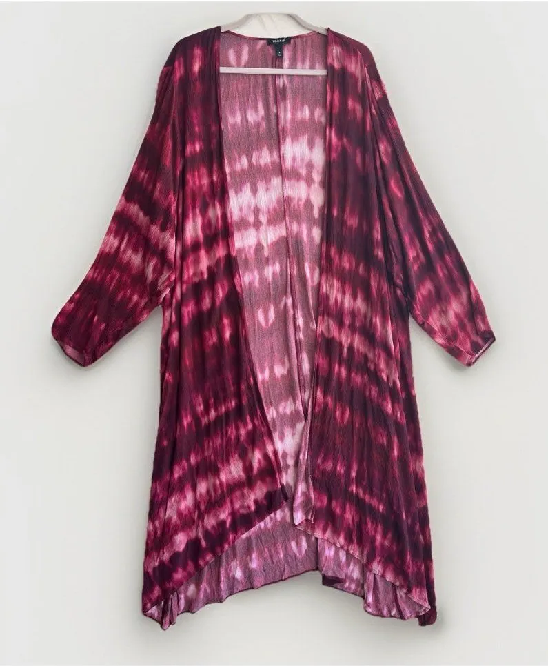 Torrid Size 4 Kimono Cardigan Tie Dye pink Burgundy Wine Long Sleeve NWOT- NEW WITHOUT TAG! Size: 4... Show more