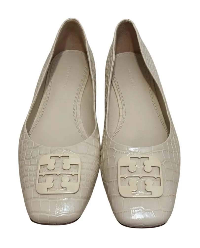 Ivory ** was tried on indoors** features: 100% leather in a croc embossed pattern. Square toe. Lo... Show more