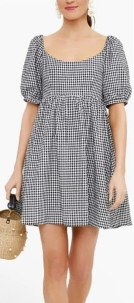 NWOT Never worn The perfect summer frock- the Abigail Dress features an empire waist, smocked back, and puff sleeves. This tan and white gingham mini wears just as easily to the farmers market as it does to brunch with friends! Round neckline Puff sleeves Empire waist Smocked back Gray and white gingham print Material: 61% Polyester, 21% Cotton, 18% Rayon Care: Hand wash cold, hang to dry