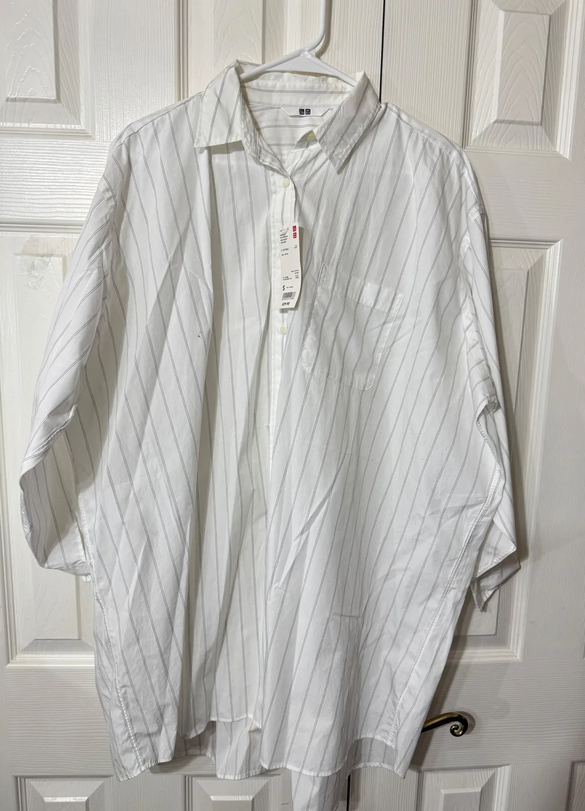 Discover effortless style with this Uniqlo oversized long sleeve shirt. The crisp off-white fabric,... Show more