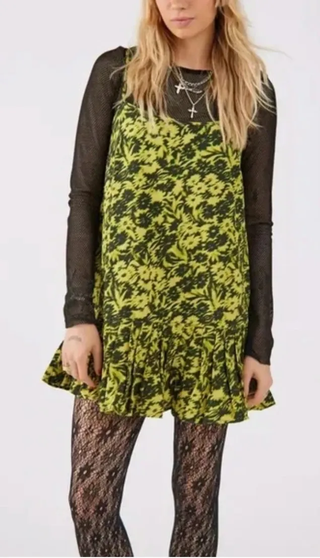 NEW Urban Outfitters Camille Floral Pleated Hem Mini Slip Dress S Features: -Flowy UO mini dress cu... Show more