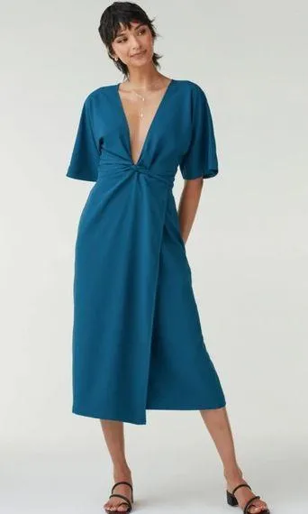 New with tag This wrinkle-resistant dress is a chic necessity for your next summer destination. This piece will be the wild card in your closet that keeps things fun. With various slits on the dress and extra long ties, you can criss-cross the ties in front, cinch the top for a deep-v look, wear it open as a duster, or wear the wrap portion in front or back. This dress will have you prepared for everything from pool lounging to a fancy dinner on your next summer escape Cocktail, versatile, capsule wardrobe, quiet luxury, classic, jewel tone, fall, winter, spring, summer, office, corporate siren, business casual, workwear
