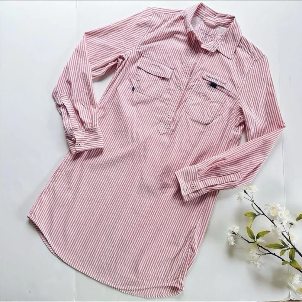 Vineyard Vines Performance Harbor Shirt Dress in Seersucker Resort Red Stripe