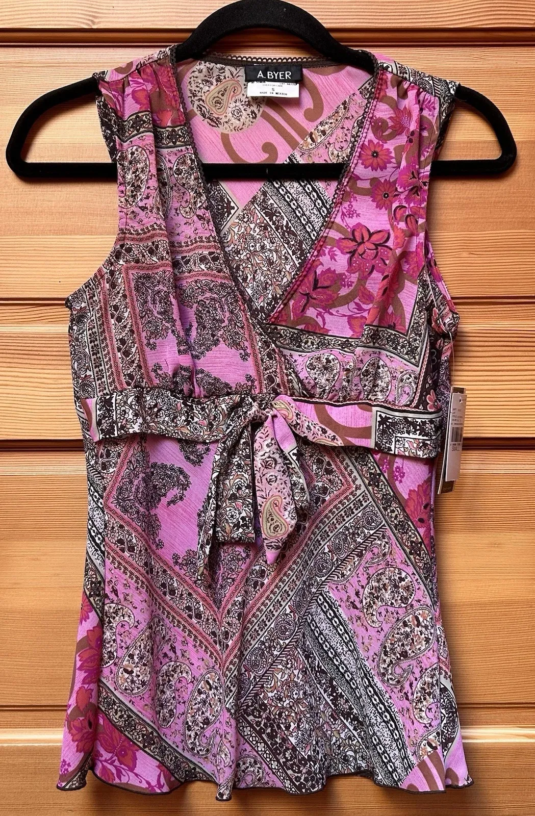 NEW Vintage Y2K | Women's Pink Patchwork Babydoll Sheer Top | Size Small | WhimsiGoth Fairycore Coquette Bratz Hippie Sheer pink and brown floral paisley patchwork babydoll top. Features brown trim along the V necklace and an adorable bow front and center. Flowy hemline. *NEW with TAGS. Excellent vintage condition. *No rips, tears, snags, stains or funky smells. *100% Polyester *Cleaning instructions: see photo *Smoke free home *Approx measurements: *Chest: 38" in *Length: 25" in *Please refer to photos as they show the exact item you will receive. *Colors vary due to viewing devices. *Happy to answer questions or provide more photos if requested. *All reasonable offers encouraged!