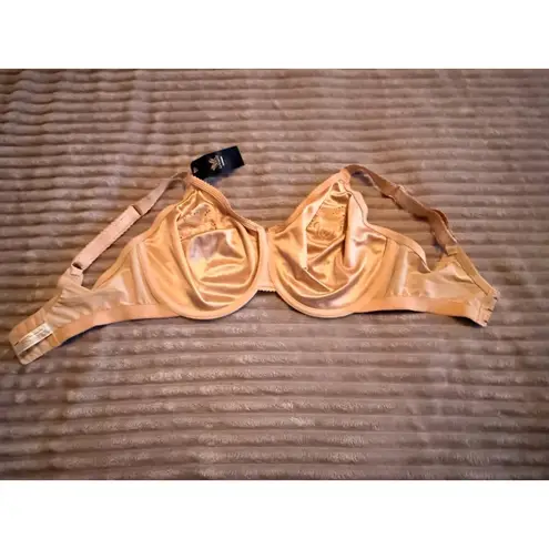 Wacoal 36DDD (F) Nude Slimline Seamless Underwire Minimizer Bra. Designed to reduce your bustline up to one inch, this seamless minimizer bra features unlined full coverage cups for perfect containment and embroidery details that add a touch of pretty. Underwire minimizer bra Reduces the bustline up to 1" Full coverage seamless single-ply cups Embroidery on top of cups Fully adjustable low-stretch straps for added support and a customized fit Hook-and-eye back closure Fabric content: Cups:100% Polyester Back: 71% Nylon/ 29% Spandex/Elastane NEW WITH TAGS! Style # 85154 MSRP $65.