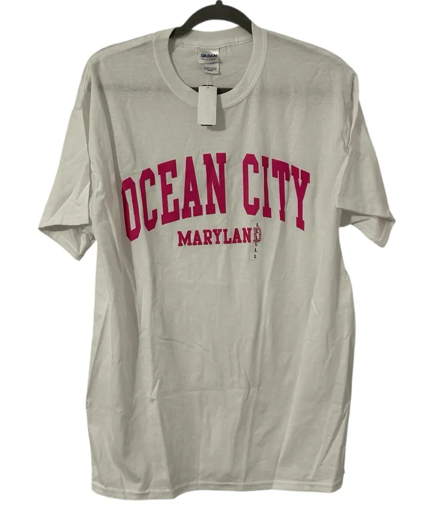 NEW White & Pink Ocean City Maryland Top Shirt Casual Tee Women’s Unisex Large! - $12 New With Tags - From Emily