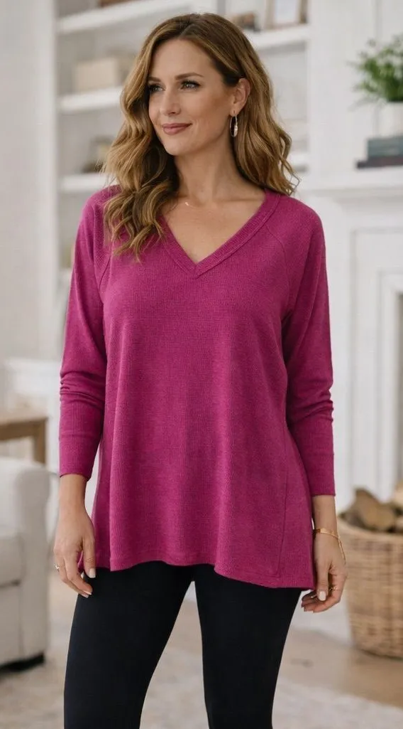 Wildfox Haley Brushed top in Elderberry (pink purple magenta fuchsia) Long sleeves V-neck Thermal te... Show more
