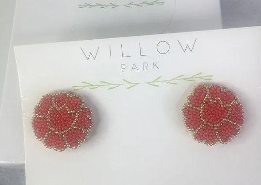 New Willow Park Artisan Stud earrings Poppy Flowers Red Orange gold Seed bead - $27 New With Tags - From alicia