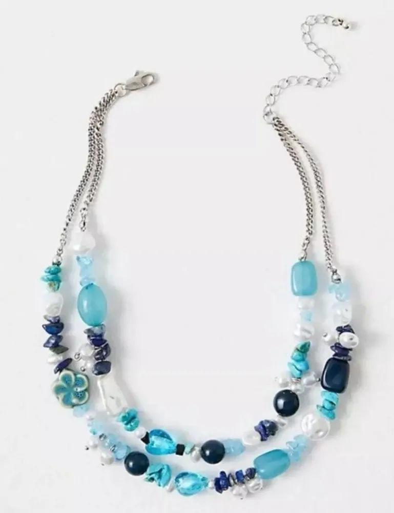 Free People Steal The Show Choker in Turquoise Tonal NWT New With Tags Attached Layered Charm Bo... Show more