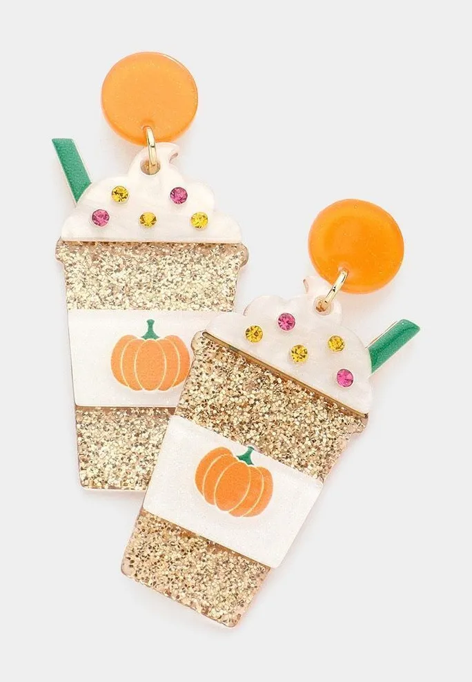 New Womens Boutique Glittered Resin Pumpkin Spice Latte Frap Dangle Earrings Orange - $18 New With Tags - From Amber