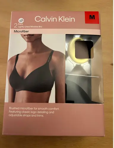 New Women’s Calvin Klein 2 Pack Lightly Lined Wireless Bras Black Beige size Medium Microf... Show more