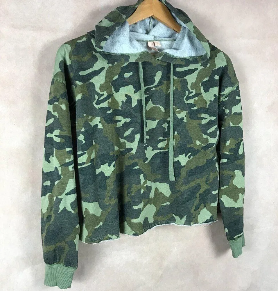 NEW Women's Cropped Green Camo Fleece Hoodie MEDIUM - $12 - From TJs