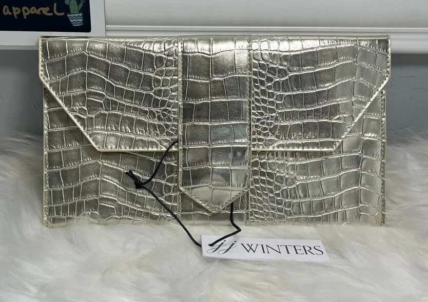 New Women’s JJ Winters Nikki Gold Metallic Mock Crocodile Clutch - $27 New With Tags - From Crystal