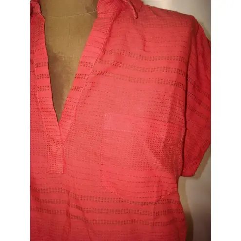 prAna Do they ever get it wrong?! I love this top and pretty much everything else they make! This is a very pretty top PERFECT for any season! This may be a sample top! For work or play! Lightweight yet substantial fabric texture, an easygoing silhouette that stays casual for the weekend or dresses up for the office, and responsible craftsmanship. Yep, our Emery Run Top really does have it all. Made from a sustainable organic cotton by a Fair Trade Certified Factory, the woven fabric feels great for more than one reason. And with a relaxed fit, its always a comfortable joy to wear. Of course, what would this top be without some extra details to make it truly shine? Our womens Emery Run has a chic notched neckline that drops down into a covered button placket, plus subtle stripes of texture that add an extra element of style. * Organic cotton dobby pattern woven * Covered button front placket * Left chest pocket * Metal bar at back yoke * Relaxed fit * Fair Trade Certified Factory FABRIC DETAILS * 100% Organic Cotton Very nice for any time of the year! Smooth and drapes; doesn't cling Size: small Color on tag: Papaya Stripe Orange and brown