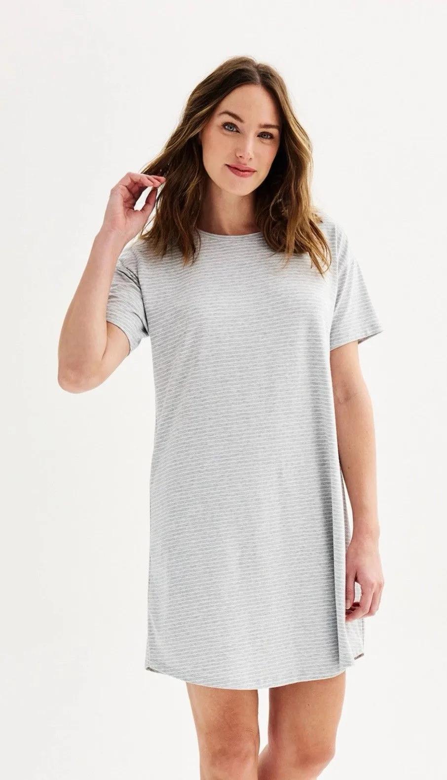 New Women's Sonoma Goods For Life Knit Sleep Shirt Grey And White Stripes