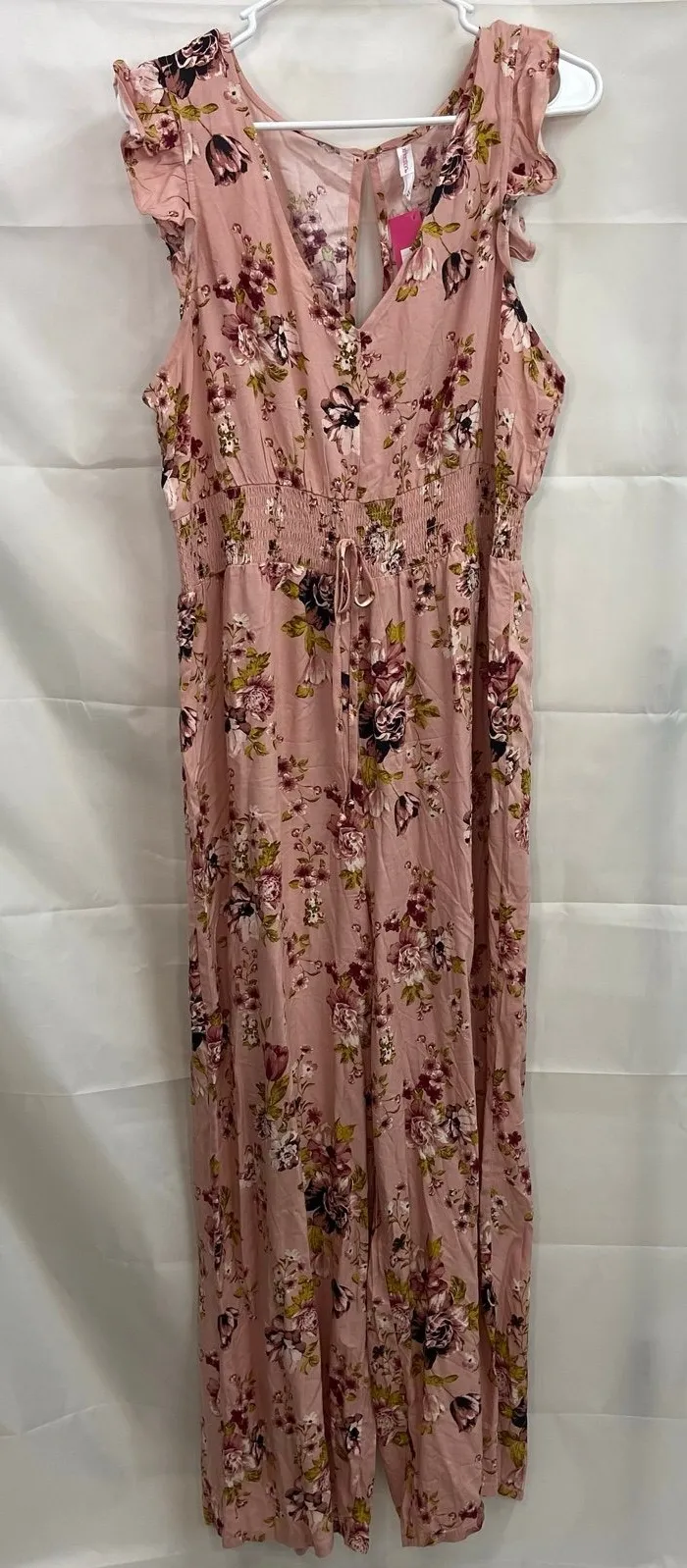 Xhilaration women's mauve pink old rose ruffle v-neck lightweight jumpsuit Size large Brand new wit... Show more