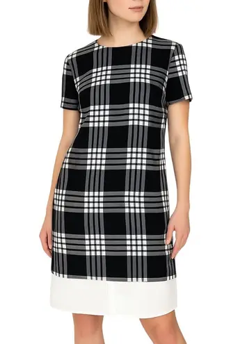 1990s Vintage Dress. New York & Co. Retro Black and White Plaid Dress. High Neck Dress with White Un... Show more