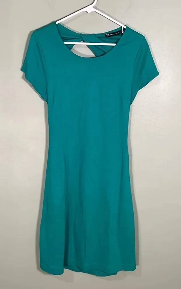 Excellent used condition Length- 38.5” Pit to pit- 17” Waist- 14” Crafted in our City Knit cotton for an effortless fit, this shift dress is a wear-everywhere staple. It features a flattering shift silhouette and an open twist-fabric back. Crewneck. Short sleeves. Shift silhouette. Open twist-fabric back. Side pockets. Hits mid- thigh
