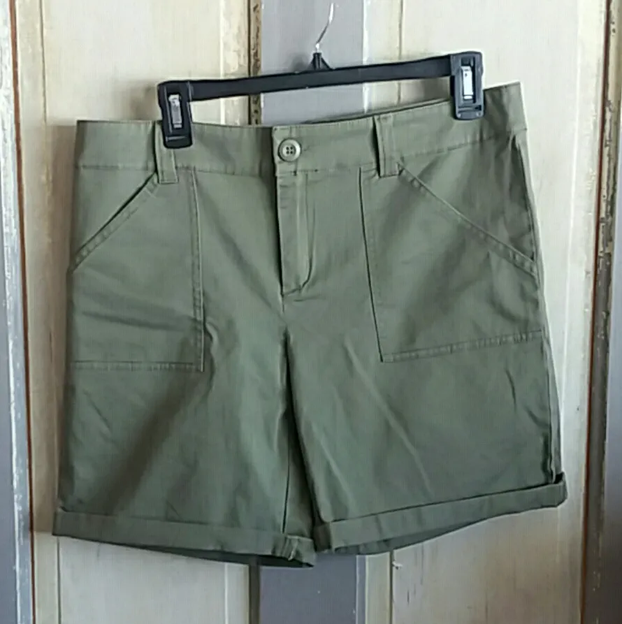Good condition Can wear cuffed or down Button and zipper Zipper works great Front pockets functional Back pockets are faux Waist 17" Length cuffed 15.5" Length uncuffed 17" Inseam 6.5" cuffed Inseam 8.5" uncuffed Rise 9" 2-5