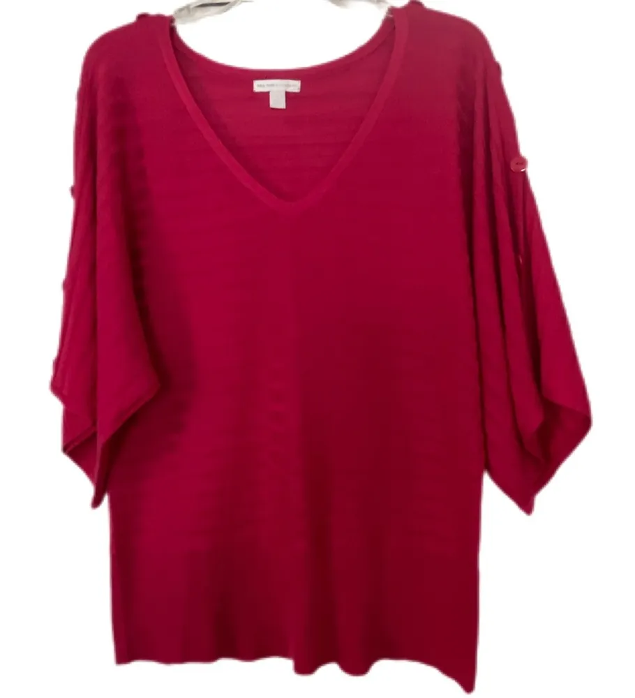 Chic deep fuchsia top with a flattering V-neck and flowy sleeves with button accents. Ideal for versatile styling. Excellent preowned condition with no flaws. Thank you for checking out my closet!! I offer same or next day shipping. Bundle 2 or more and save 20%. I accept all reasonable offers. Happy Poshing!!