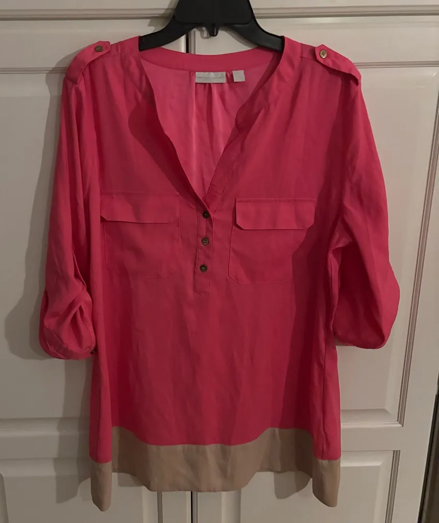 New York & Company Fustian Pink Tunic Blouse Front‎ Pockets Size large. - $6 - From Debra