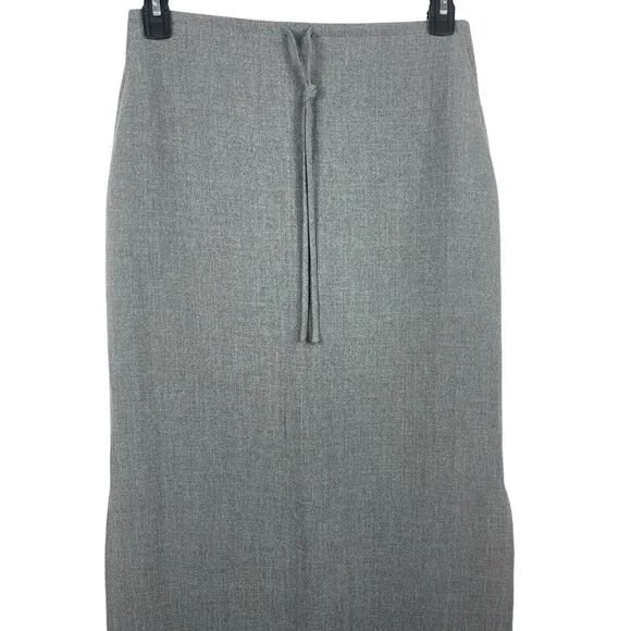 Elevate your office wardrobe with this stunning gray maxi skirt from New York & Company. This skirt features a tie waist and zipper closure for a flattering fit, with side slits that add a touch of sophistication. The long length and solid pattern make it a versatile piece for any professional occasion. Crafted from high-quality polyester, this skirt is both comfortable and durable. The accents of a tie and zipper add a touch of elegance to the overall design. Perfect for any woman looking for a stylish and comfortable skirt for work or a night out.