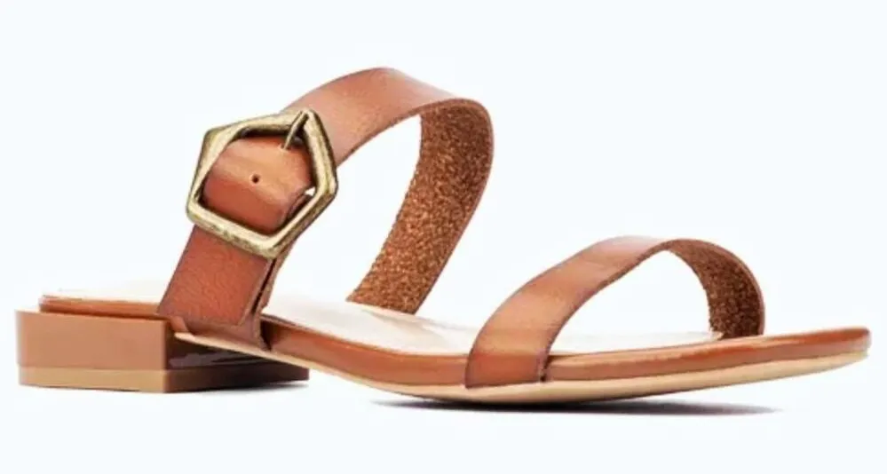 New York & Company Helga Big Buckle Sandal Double Strap Brown Open Toe Size 10 - $35 - From Brenda