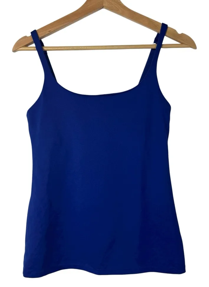 New York & Company Royal Blue Cami Tank Top Good used condition, minimal signs of wear. - Round neckline - Thin tank straps - Shelf bra detail - Fitted style - Cami, under fit - 92% polyester 8% spandex Measurements available upon request. All items ship from a smoke & pet free environment. All orders ship same or next business day.