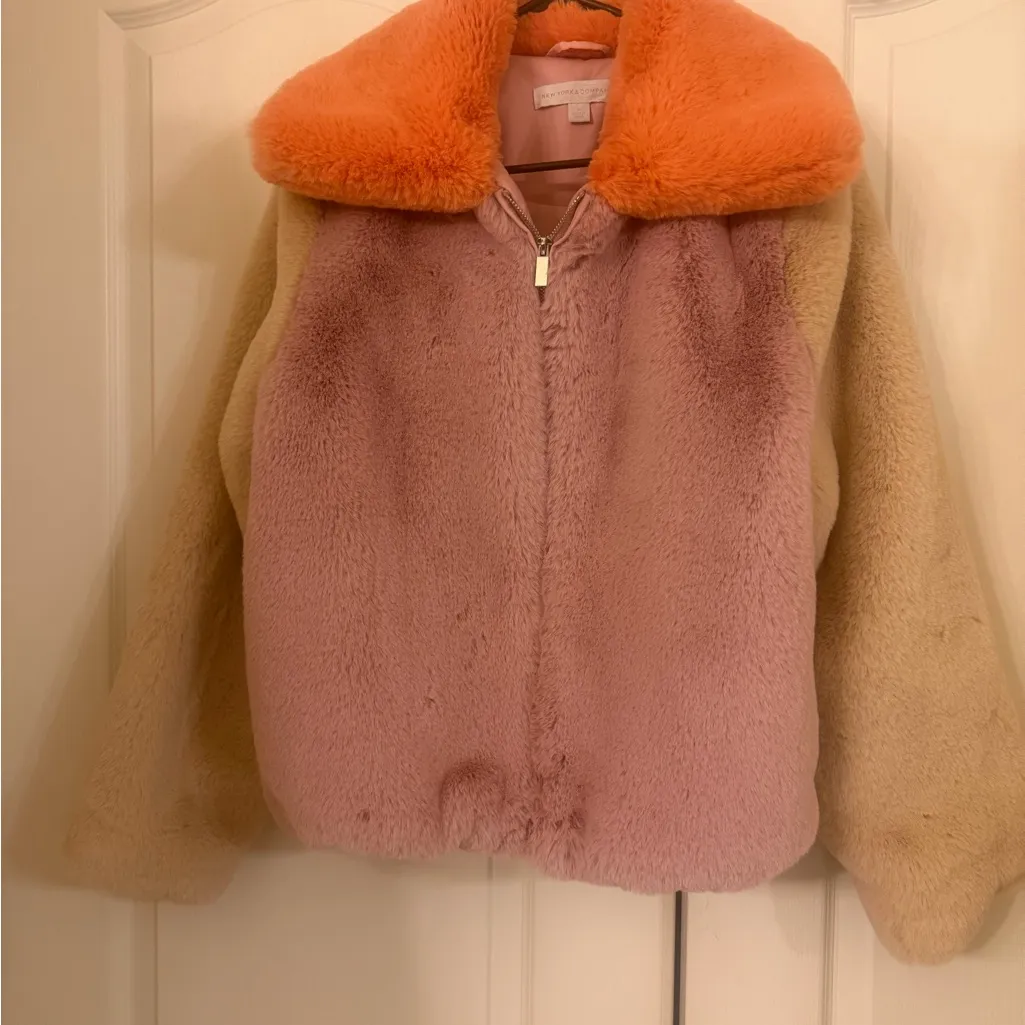 New York & Company Soft and warm Orange, tan & pink Faux Fur Jacket Orange Size M - $60 - From Allison