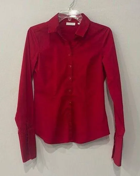 Pre-owned - in excellent condition! No holes, rips, tears or stains (see pics for details) Features: Red Top V-neck. Long sleeves. Pointed collar. Button-front closure with Secret Snap closure to prevent gaping. Fabric & Care 60% Cotton, 35% Polyester, 5% Spandex. Machine Wash. OFFERS ARE ALWAYS WELCOME! NOTE TO BUYERS: Clothing has been properly cleaned prior to Listing. They are free of odors and stains, ready to wear. All items come from a smoke free environment. We try to describe them as accurate as possible. Should we miss anything, please let us know before leaving negative feedback. Contact us, we will work to correct it. Shipping: All orders will be ship out within 24 hours of payment except holiday or weekend. We ship USPS and every item is issued a tracking number to follow your package. Thanks for your business! A0629 A/Y - 10/2022