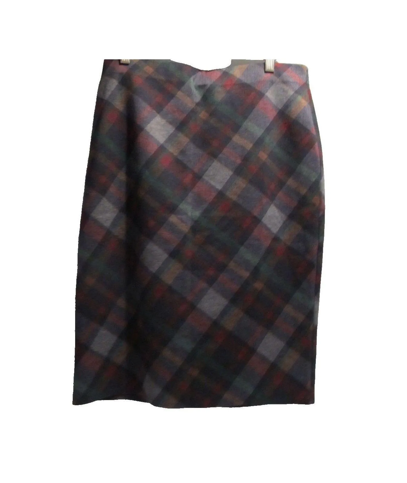 New York Clothing Co. Women's Plaid Pencil Skirt Size M Pre-Owned Classic meets modern in this plaid pencil skirt from New York Clothing Company. Featuring a diagonal tartan pattern in rich tones of red, green, blue, and gray, this knee-length skirt adds a touch of sophistication to any wardrobe. Perfect for office wear, holiday styling, or layering with boots and sweaters. ITEM DETAILS * Brand: New York Clothing Company * Size: Medium (Women's) * Color: Multicolor plaid (red, green, blue, gray) * Style: Pencil skirt, knee-length * Material: Polyester blend * Waistband: Flat front with back zipper * Condition: Pre-owned Good (no stains, tears, or fading)