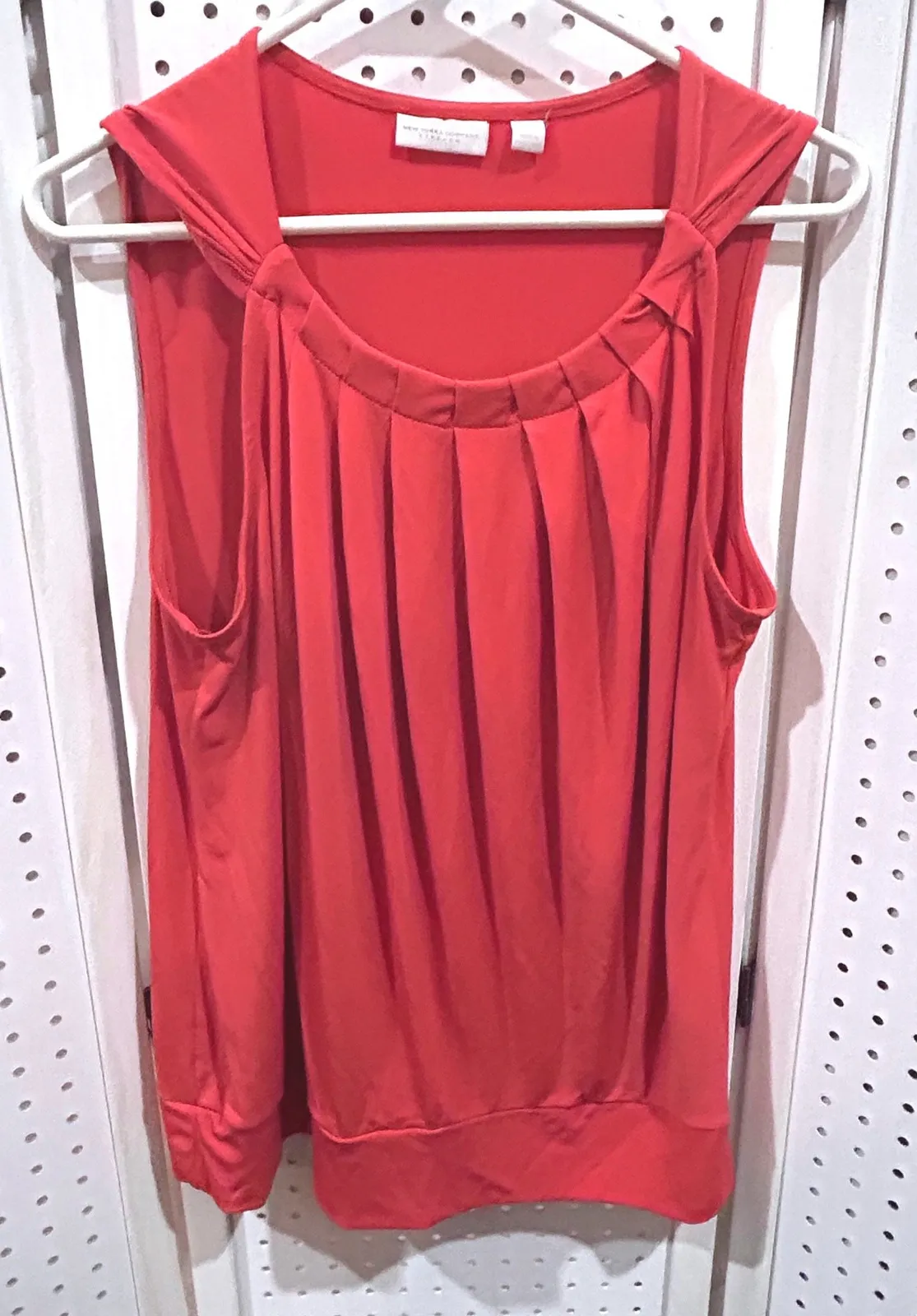 Excellent item! New York & Company coral sleeveless tank top. This flattering top features a gathe... Show more