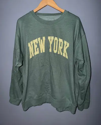 Sage green crewneck sweatshirt with "New York" graphic. This comfortable pullover features a classic... Show more