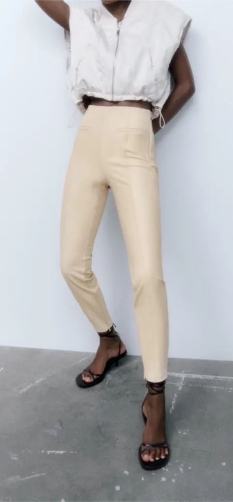 NEW Zara Creamy Beige Tan Faux Leather Leggings Ankle Zips Sz XS - $40 - From Elizabeth