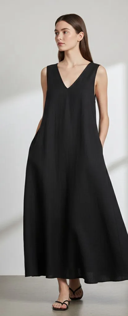 New ZARA Maxi Dress V-Neck Black Faux Suede Voluminous Dress Lagenlook Fairy Grunge Whimsigoth Size... Show more