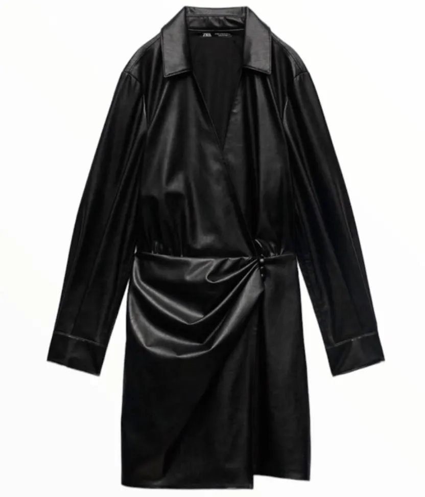 NEW ZARA WOMEN BLAZER DRAPED FAUX LEATHER SHIRT DRESS M Size M - $45 New With Tags - From Pamela