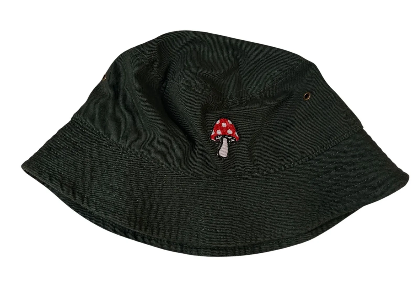 In excellent like new condition Style: Bucket Hat Department: Unisex Adults Material: 100% Cotton Theme: Nature, Boho Fabric Type: Canvas Season: Spring, Summer, Fall Accents: Embroidered Features: Wide Brim, Breathable, Lightweight Occasion: Casual, Travel Pattern: Spotted Keywords: bucket hat, dark green, mushroom, embroidered, cotton, unisex, casual, streetwear, outdoor, summer, boho, quirky, fall fashion