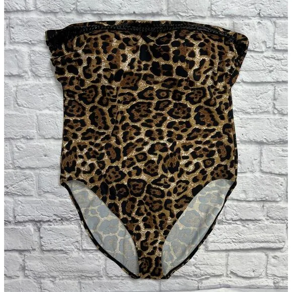 Newport News One Piece Swimsuit Size 14 Bandeau Leopard Sequin Halter Brown - $26 - From Alexis