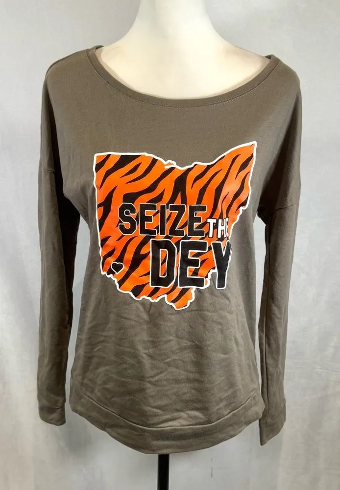 Cincinnati Bengals Seize the Dey long sleeve graphic football tshirt medium NWOT Orange - $24 - From Upstyle