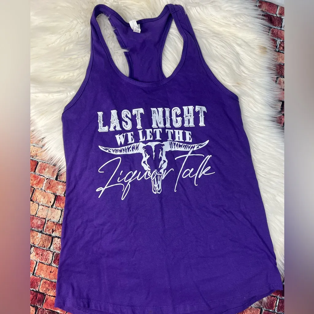 Purple rush racerback tank with a white design. •Tank top sizing info: *RUNS SMALL* so please be su... Show more