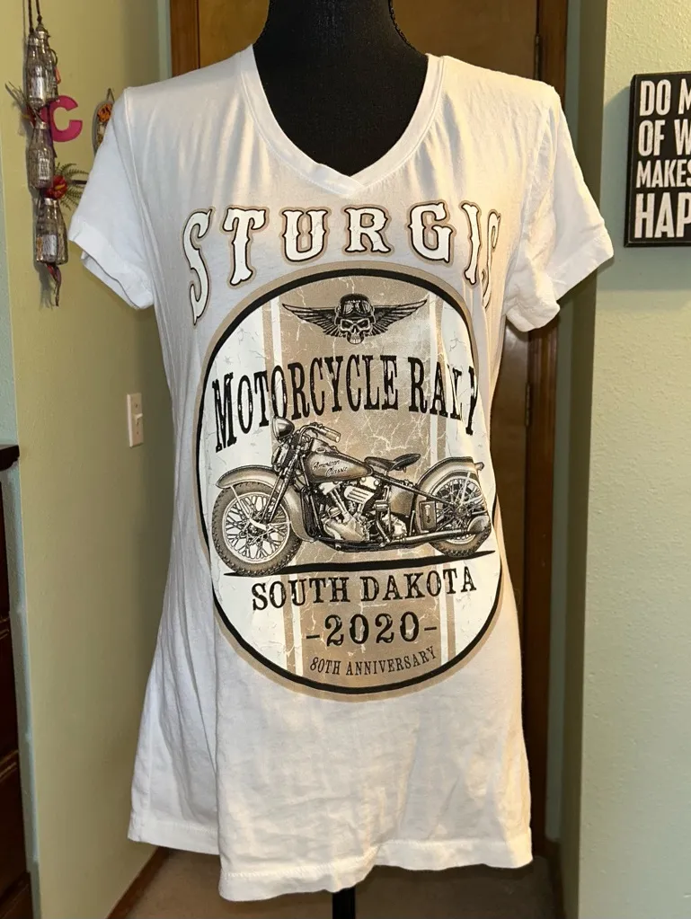Sturgis 80th anniversary 2020 white short sleeve v-neck screen tee size XXL - $15 - From Cristal