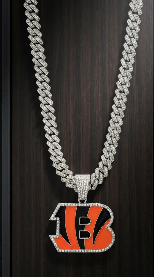 Cincinnati Bengals 20Inch Necklace Pendant Cuban Chain Link Football Jewelry Brand New, Never Worn.... Show more