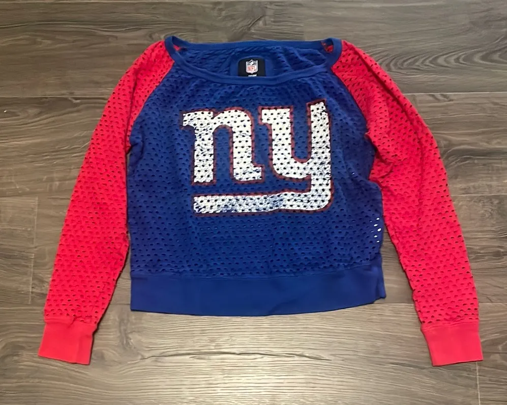 NFL Team Apparel New York Giants Women's Red & Blue Mesh Crew Neck Top, Sz Large - $51 - From Christina