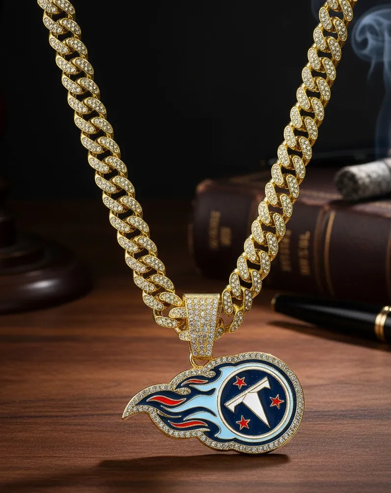 Tennessee Titans 20 Inch Necklace Pendant Cuban Chain Link Football Jewelry Brand New, Never Worn.... Show more