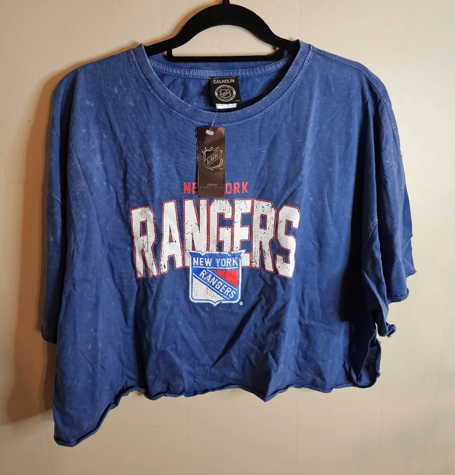 NHL New York Rangers Oversized Acid Wash Raw Hem Crop Tee In Large Extra Large Blue - $33 New With Tags - From Brandy